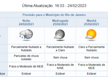 Noticias 24 de fevereiro de 2023 Possibilidade de chuvas rápidas e isoladas nesta noite (24/02): condições se mantém até terça-feira