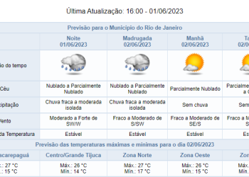 Noticias 1 de junho de 2023 Previsão de chuva fraca a moderada até a madrugada de sexta (02/06) | Fim de semana deve ser com sol