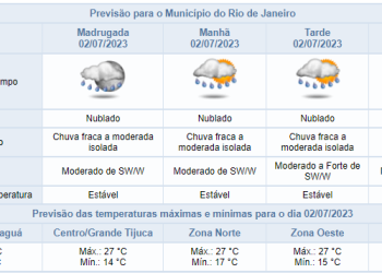 Noticias 2 de julho de 2023 Domingo será de chuva fraca no Rio | Confira a previsão para os próximos dias