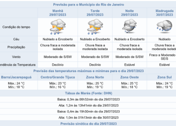 Noticias 29 de julho de 2023 Frente fria traz chuva e derruba temperatura no Rio neste sábado (29/07). Confira a previsão