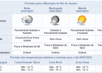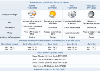 Noticias 3 de julho de 2023 Segunda-feira (03/07) com previsão de chuva fraca de forma isolada nos períodos da manhã e noite