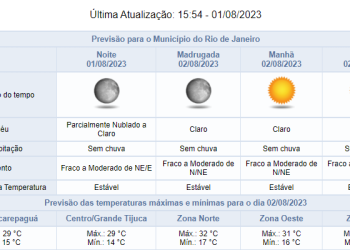 Noticias 1 de agosto de 2023 Sem previsão de chuva nesta noite de terça-feira (01/08): tempo permanece estável se mantém até sábado