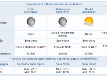 Noticias 5 de agosto de 2023 Noite de sábado sem chuva na cidade do Rio | Confira a previsão do tempo para os próximos dias