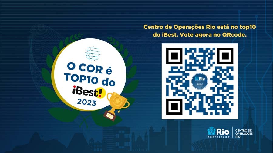 O trabalho desenvolvido pelas redes sociais do Centro de Operações Rio (COR) está no TOP 10 do Prêmio iBest 2023, na Categoria Governo Estadual. Até o dia 17 de setembro, você pode votar para ajudar o COR a alcançar o TOP 3 da categoria. O anúncio dos vencedores em cada uma das 105 categorias será feito em 30 de janeiro de 2024.