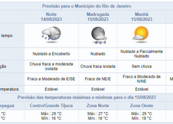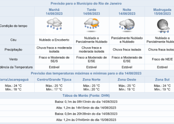 Noticias 14 de agosto de 2023 Semana começa com chuva no Rio. Máxima prevista de 25°C. Confira a previsão para os próximos dias
