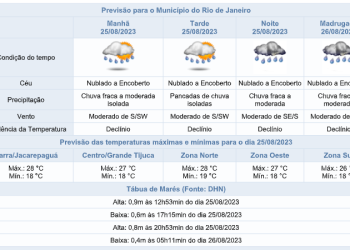 Noticias 25 de agosto de 2023 Tempo instável: sexta-feira (25/08) tem previsão de pancadas de chuva no Rio | Fim de semana será chuvoso