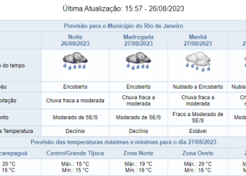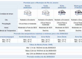 Noticias 26 de agosto de 2023 Sábado (16/08) com previsão de chuva a qualquer hora do dia. Confira os detalhes do tempo para os próximos dias