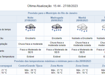 Noticias 27 de agosto de 2023 Chuva segue no Rio neste domingo (27/08). Confira como fica a previsão até quinta-feira (31/08)