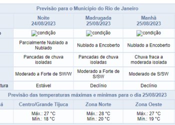 Noticias 24 de agosto de 2023 Noite de quinta-feira com previsão de pancadas de chuva | Confira o tempo nos próximos dias