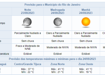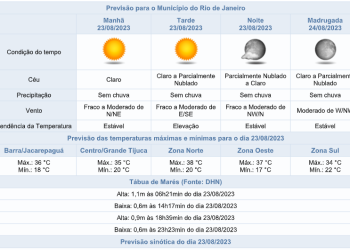 Noticias 23 de agosto de 2023 Quarta-feira (23/08) com previsão de forte calor no Rio e baixa umidade. Máxima pode chegar aos 38°c.