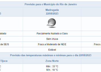 Noticias 21 de agosto de 2023 Tempo permanece estável até quarta-feira (23/08) | Uma nova frente fria chega ao Rio a partir de quinta-feira (24/08)