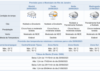 Noticias 20 de agosto de 2023 Domingo (20/08) tem previsão de chuva fraca a moderada, isolada | Confira a previsão no Rio para a semana
