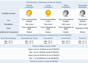 Noticias 7 de agosto de 2023 Semana começa com tempo estável. Máxima chega aos 35° graus. Confira a previsão para os próximos dias