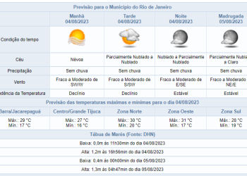 Noticias 3 de agosto de 2023 Tempo segue estável nesta quinta-feira (03/08) no Rio. Confira a previsão para os próximos dias na cidade