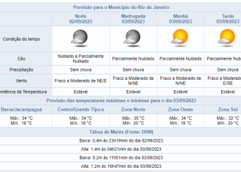 Noticias 2 de setembro de 2023 Noite (02/09) sem previsão de chuva na cidade | Cariocas terão domingo de calor e máxima de 35°C