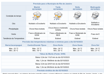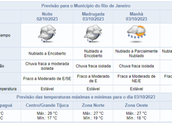Noticias 2 de outubro de 2023 Noite de segunda-feira com previsão de chuva fraca a moderada isolada | Confira os próximos dias