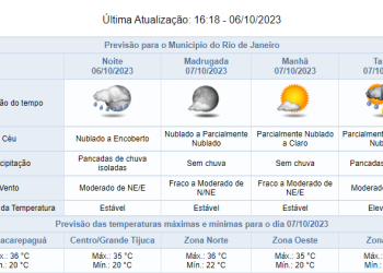 Noticias 6 de outubro de 2023 Previsão de pancadas rápidas de chuva moderada nessa noite (06/10) | Tempo instável se mantém nos próximos dias