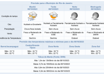 Noticias 8 de outubro de 2023 Noite de domingo será de tempo estável (08/10) | Semana começa com pancadas rápidas de chuva