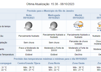 Noticias 8 de outubro de 2023 Domingo (08/10) começa chuvoso, mas tempo fica estável durante a tarde | Previsão é de chuva até terça