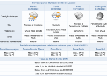 Noticias 1 de outubro de 2023 Noite (01/10) com previsão de chuva e ventos moderados na cidade do Rio: veja a previsão para a semana
