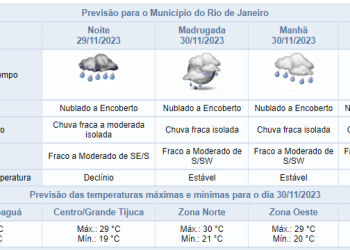 Noticias 30 de novembro de 2023 Noite de quinta-feira com previsão de chuva fraca isolada no Rio | Confira os próximos dias