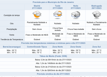 Noticias 27 de novembro de 2023 Semana começa com chuva no Rio. Confira a previsão do tempo completa para os próximos dias
