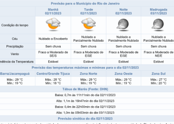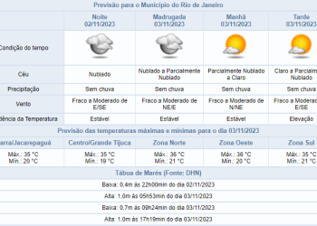 Noticias 2 de novembro de 2023 Previsão para noite sem chuva no feriado finados. Confira a previsão para os próximos dias no Rio