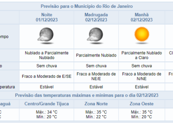 Noticias 1 de dezembro de 2023 Noite de sexta-feira sem pevisão de chuva na cidade do Rio de Janeiro | Confira os próximos dias