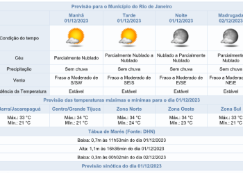 Noticias 1 de dezembro de 2023 Dezembro começa sem chuva no Rio, máxima de 34°c. Confira a previsão completa para os próximos dias.