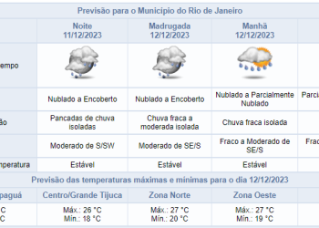 Noticias 11 de dezembro de 2023 Fim de tarde de segunda-feira com previsão de pancadas isoladas de chuva | Confira os próximos dias