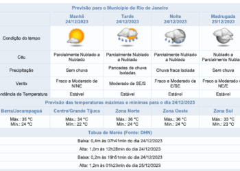 Noticias 24 de dezembro de 2023 Segunda-feira será sem chuva na cidade do Rio de Janeiro | Ventos estarão fracos a moderados