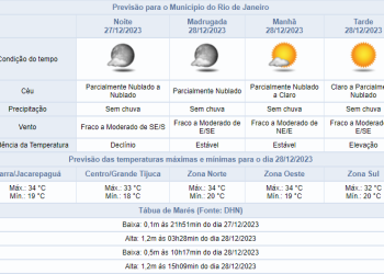 Noticias 27 de dezembro de 2023 Noite de quarta-feira sem chuva no Rio | Confira a previsão para os últimos dias de 2024