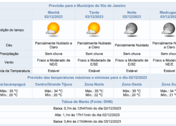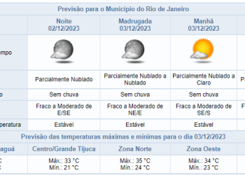 Noticias 1 de dezembro de 2023 Noite de sexta-feira sem pevisão de chuva na cidade do Rio de Janeiro | Confira os próximos dias