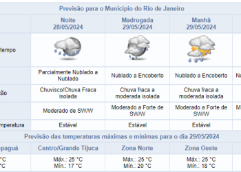 Noticias 28 de maio de 2024 Noite de terça-feira com previsão de chuva fraca isolada no Rio de Janeiro | Confira os próximos dias