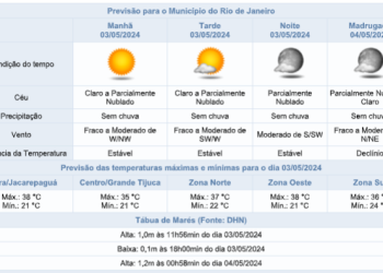 Noticias 3 de maio de 2024 Noite de sexta-feira com céu claro a parcialmente nublado e sem chuva no Rio | Saiba mais informações