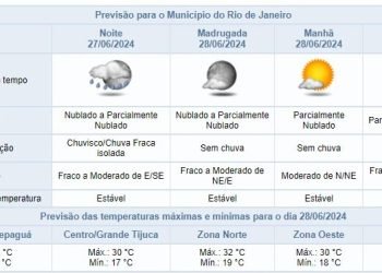 Noticias 27 de junho de 2024 Noite de quinta-feira com céu nublado a parcialmente nublado e chuva fraca isolada | Confira os próximos dias