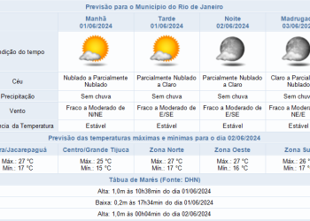 Noticias 1 de junho de 2024 Sábado (01/06) com previsão de tempo estável e sem chuva | A partir de terça (04/06) tem previsão de chuva fraca.