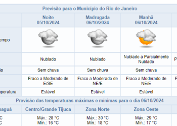 Noticias 5 de outubro de 2024 Noite de sábado (05/10) sem previsão na cidade do Rio de Janeiro | Confira os próximos dias