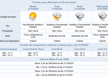 Noticias 31 de outubro de 2024 Outubro termina com tempo estável na cidade do Rio de Janeiro, nesta quinta-feira (31/10)