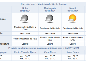 Noticias 1 de novembro de 2024 Noite de sexta-feira (1/11) sem previsão de chuva no Rio de Janeiro | Confira os próximos dias