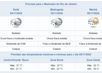 Noticias 4 de novembro de 2024 Previsão de chuva para esta semana na cidade do Rio de Janeiro, começando na tarde desta segunda-feira (04/11)