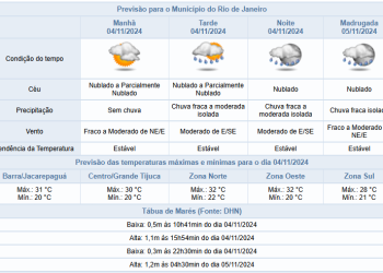 Noticias 4 de novembro de 2024 Segunda-feira (04/11) com previsão de chuva no Rio | Confira como deve ser a semana do carioca