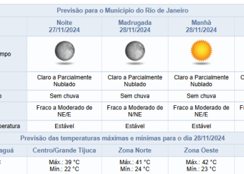 Noticias 27 de novembro de 2024 Noite de quarta-feira (27/11) sem previsão de chuva no Rio de Janeiro | Confira os próximos dias