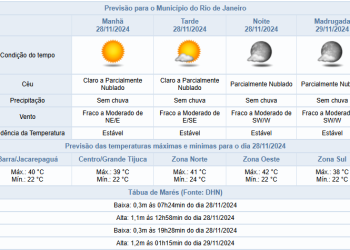 Noticias 28 de novembro de 2024 Calor de verão nesta quinta-feira (28/11) na cidade do Rio de Janeiro | Chuva a partir de sexta (29/11)
