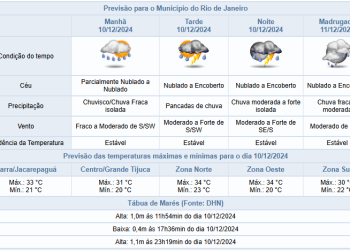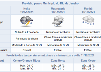 Noticias 10 de dezembro de 2024 Previsão de pancadas de chuva e vento forte na tarde desta terça-feira (10/12) na cidade do Rio