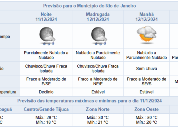 Noticias 11 de dezembro de 2024 Noite de quarta-feira (11/12) com previsão de chuva fraca isolada | Confira os próximos dias