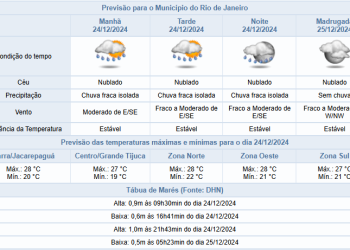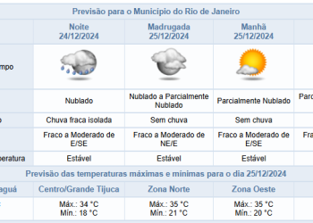 Noticias 24 de dezembro de 2024 Véspera de Natal (24/12) com previsão de chuva fraca a qualquer momento na cidade do Rio