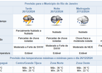 Noticias 26 de dezembro de 2024 Município do Rio tem previsão de temperaturas elevadas e pancadas de chuva na tarde desta quinta-feira (26/12)