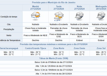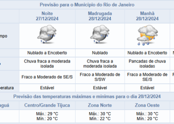 Noticias 27 de dezembro de 2024 Noite de sexta-feira (27/12) com previsão de chuva fraca a moderada no Rio | Confira os próximos dias