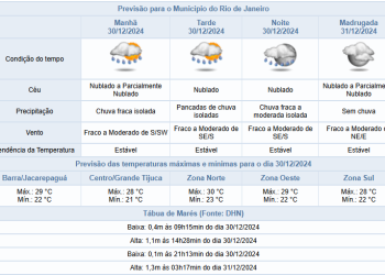 Noticias 30 de dezembro de 2024 Previsão de chuva nesta segunda-feira na cidade do Rio | Possibilidade de chuva na virada do ano